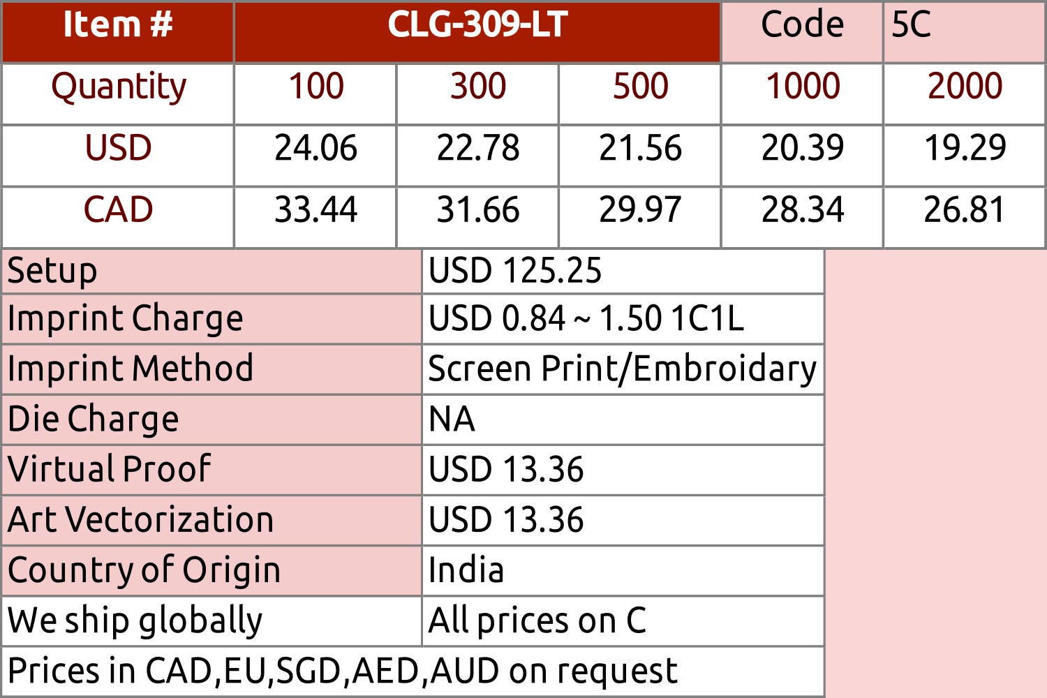 Imprint Size: 5.00 Wx7.00 H inch.13.00 Wx18.00 H cm
