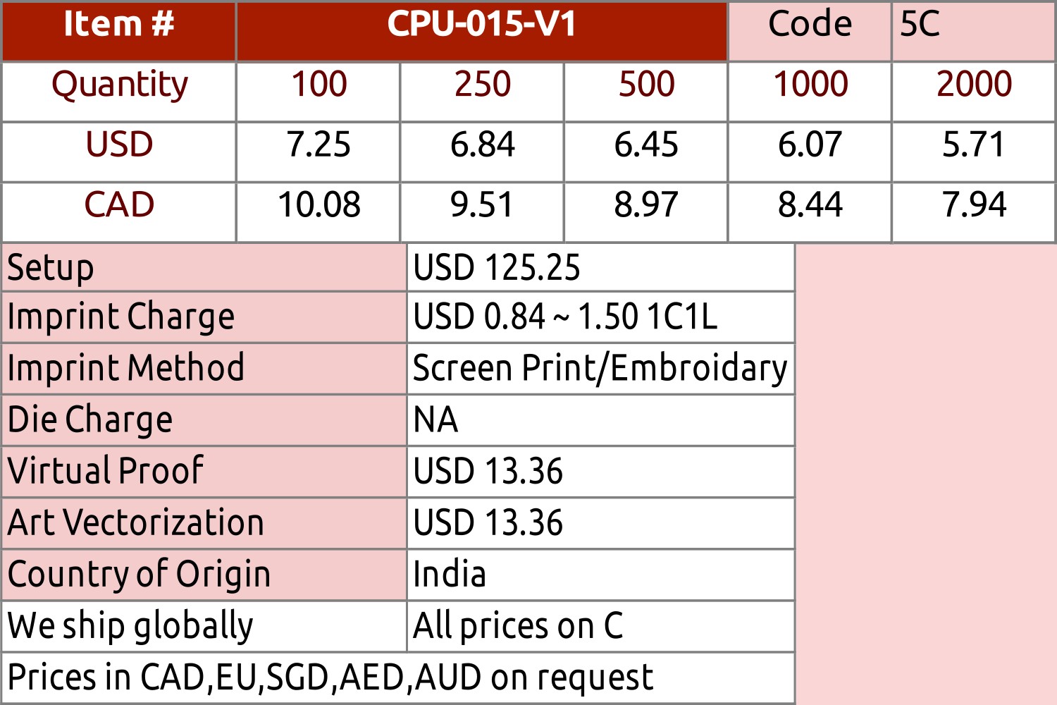Imprint Size:1.97 Wx1.18 H inch.5.00 Wx3.00 H cm