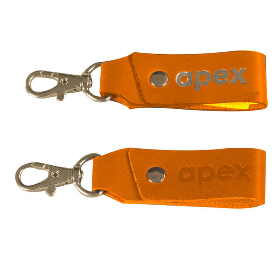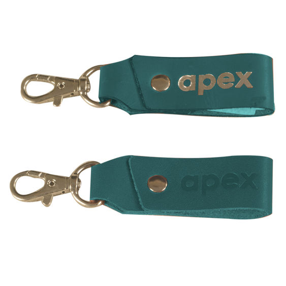 Folded leather design & bull dog hook are unique to this best seller key fob.