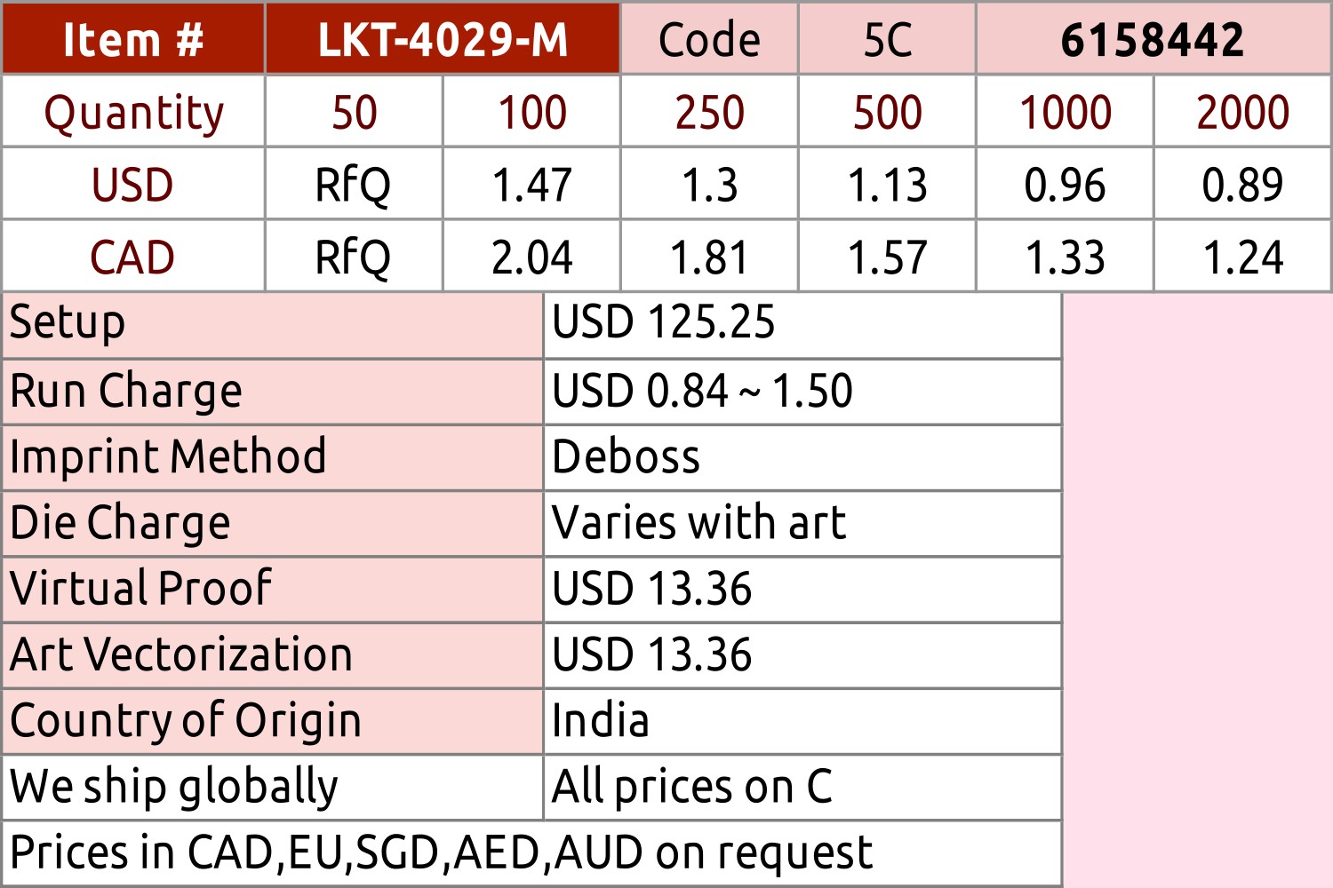 Great prices, low MoQ, quick turn.Complete with logo debossed.