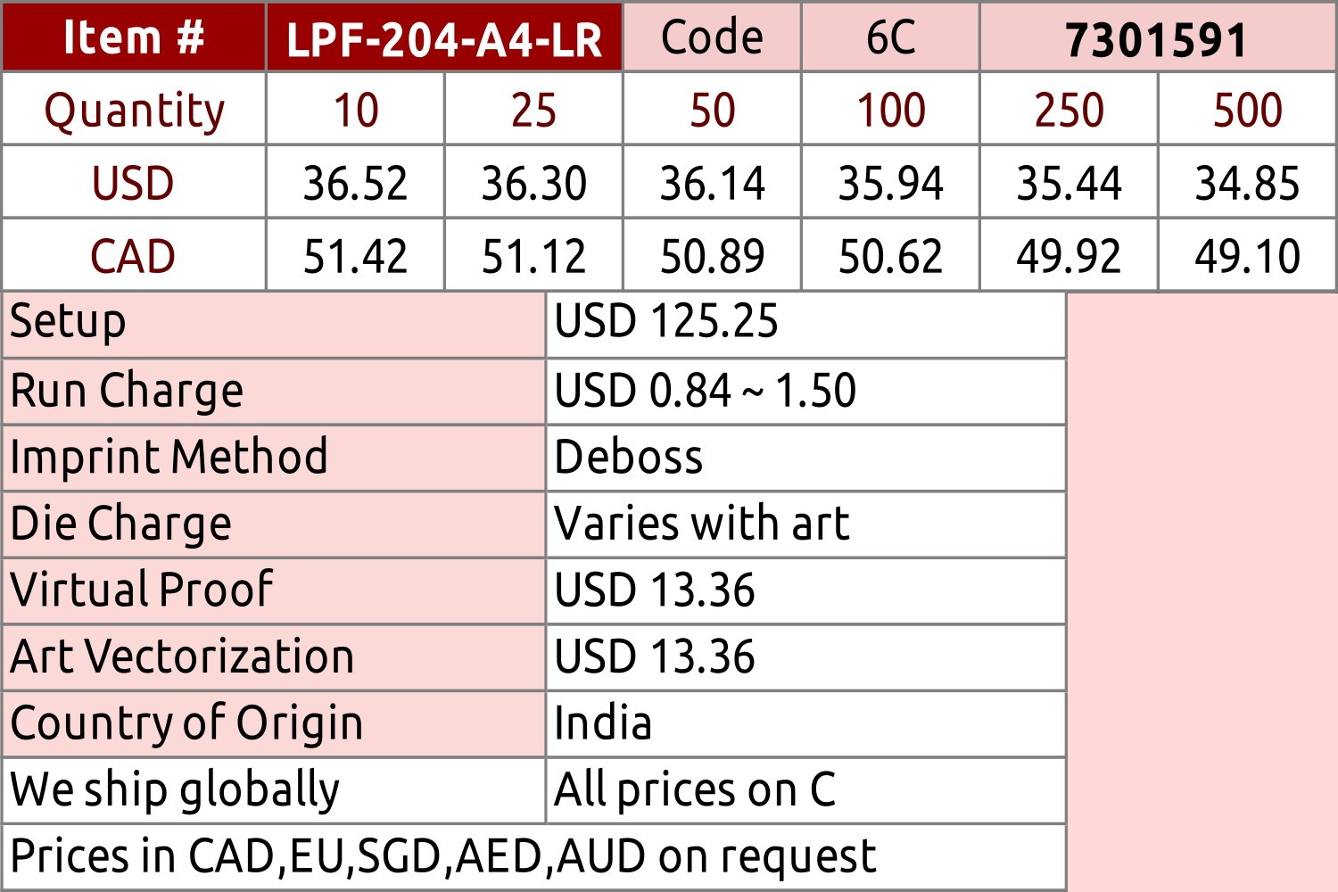 Imprint Method:Deboss (Recommended), Laser engraving.