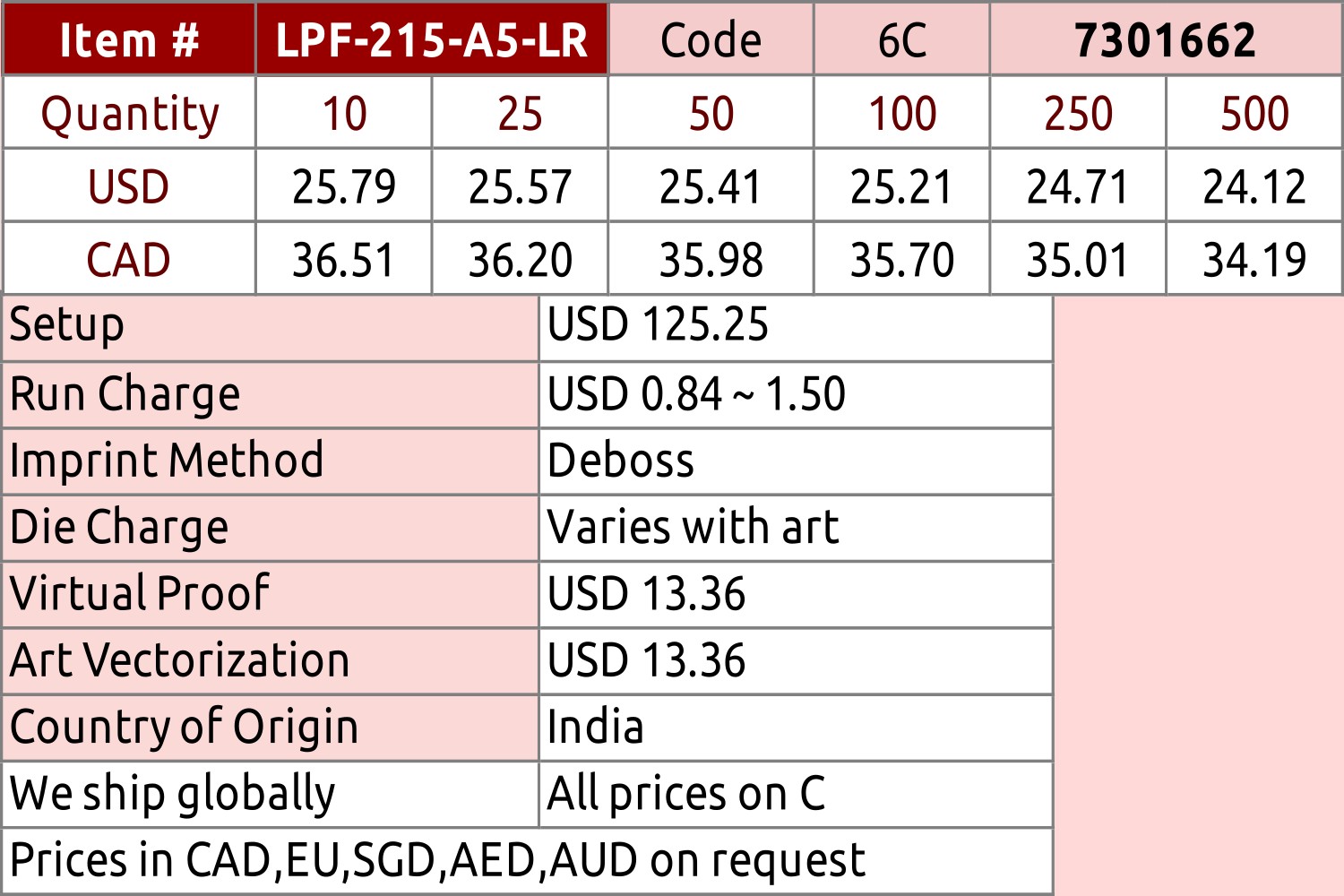 Imprint Method: Deboss (Recommended), Laser engraving.