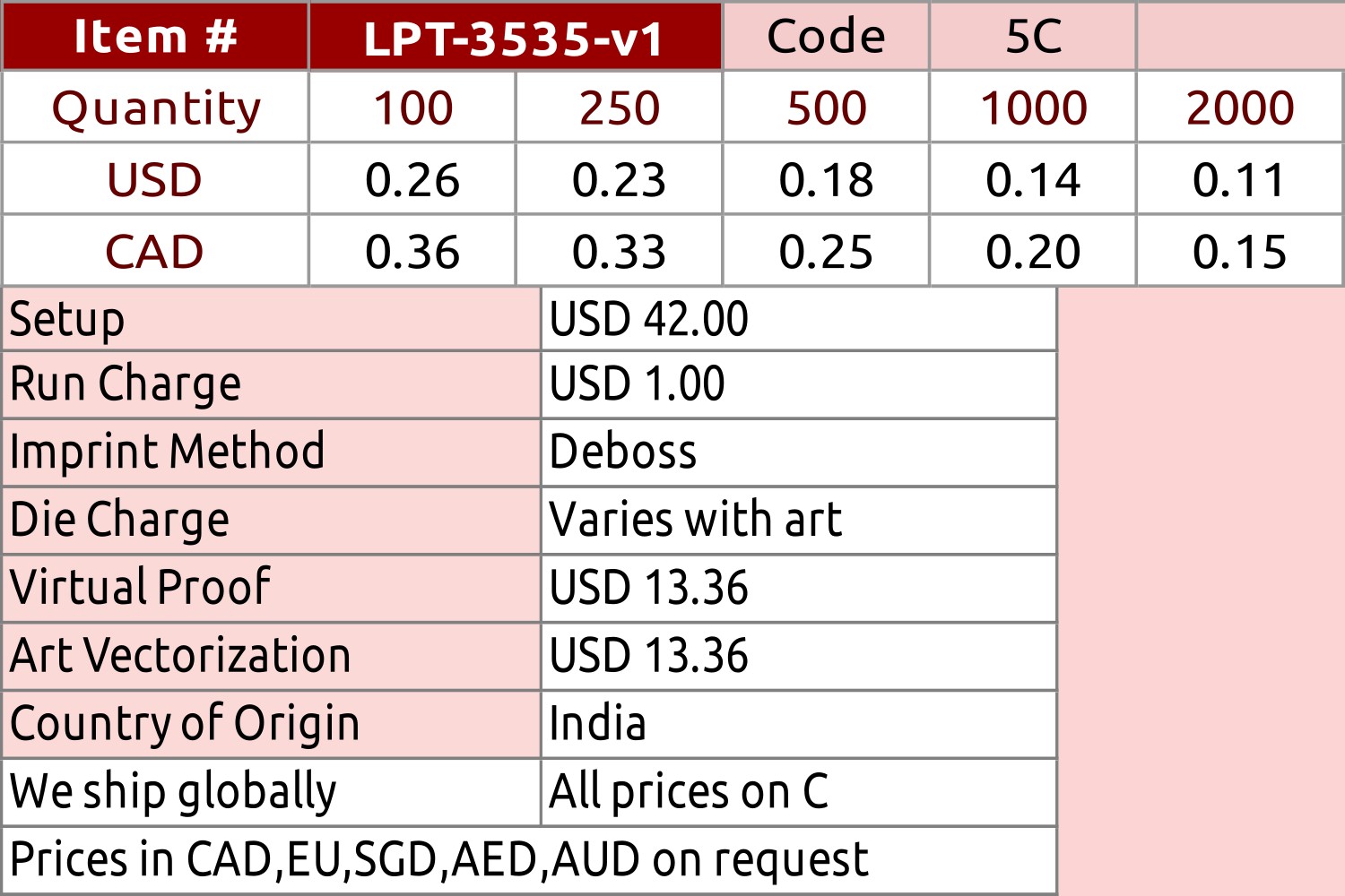 Imprint Size:0.98 W x 0.98 H inch. 2.50 W x 2.50 H cm.